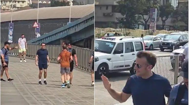रात्री ताज हॉटेलमध्ये विश्रांती घेतल्यानंतर सकाळी फ्रान्सचे अध्यक्ष माक्राँ ब्ल्यु टी-शर्ट आणि काळ्या शॉर्ट्समध्ये मुंबईच्या प्रसिद्ध मरीन ड्राईव्हवर जॉगिंग करताना ते दिसले. त्यांच्या सोबत साध्या वेषात सुरक्षा अधिकारी देखील होते…तेही त्यांच्यासोबत धावत होते.