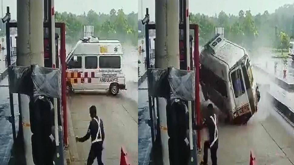 समोर आलेल्या माहितीनुसार हुन्नावर ते कुंदापूर असा प्रवास करत असणाऱ्या या रुग्णवाहिकेमध्ये एक रुग्ण आणि दोन कर्मचारी होते. या तिघांचाही अपघातामध्ये मृत्यू झाला आहे. तसेच टोल नाक्यावरील एका कर्मचाऱ्याचाही या अपघातात मृत्यू झाला असून चालक गंभीर जखमी असल्याचं पोलिसांनी सांगितलं आहे. अपघाताच्या सीसीटीव्ही फुटेजमध्ये पावसामुळे ओल्या झालेल्या रस्त्यावरुन गाडी सरकल्याचं दिसत आहे.