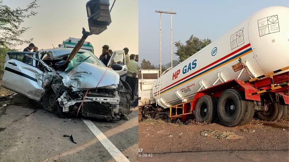 मुंबईहून पारोळा येत असताना वीचखेडे गावानजीक आशिया महामार्गावर सकाळी सात वाजेच्या सुमारास कार व ट्रॅंकरचा अपघात झाला. समोरून भरधाव वेगाने येत असलेल्या टॅंकरने कारला जोरदार धडक दिल्याने यात पारोळा नगरपालिकेचा अभियंता कुणाल सौपुरे (वय ३५, रा. गोंधळ वाडा, पारोळा) व एम. एस. ऑर्थो स्पेशलिस्ट डॉ. निलेश मंगळे (वय ३५, रा. डी. डी. नगर, पारोळा) यांचा जागीच मृत्यू झाला. तर संदीप पवार (वय ३७) हा जखमी झाल्याची माहिती मिळाली आहे.