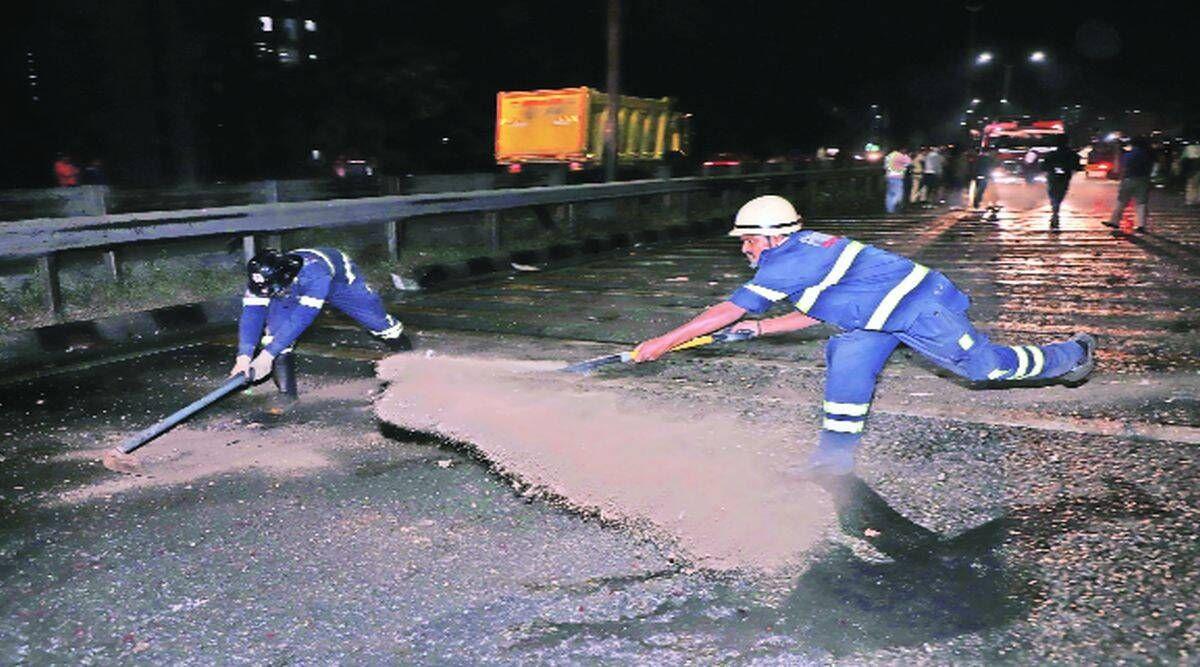 नवले पूल परिसरातील अपघात रोखण्यासाठी वाहतूक पोलिसांकडून महामार्ग प्राधिकरणाकडे पाठपुरावा करण्यात आला. या भागात वाहतूक विषयक उपाययोजना करण्यात आल्याने गेल्या दोन वर्षांच्या तुलनेत अपघातांचे प्रमाण कमी झाले आहे, असे वाहतूक शाखेतील वरिष्ठ पोलीस निरीक्षक अशोक तोरडमल यांनी सांगितले. दरम्यान, रविवारी रात्री बाह्यवळण मार्गावर झालेल्या अपघातात ट्रक चालकाचे नियंत्रण सुटले. ट्रकच्या धडकेने ४८ वाहनांचे नुकसान झाले असून, १३ जण जखमी झाले. या प्रकरणी ट्रक चालक मणीराम छोटेलाल यादव (रा. मध्यप्रदेश) याच्या विरोधात सिंहगड पोलीस ठाण्यात गुन्हा दाखल करण्यात आला आहे.