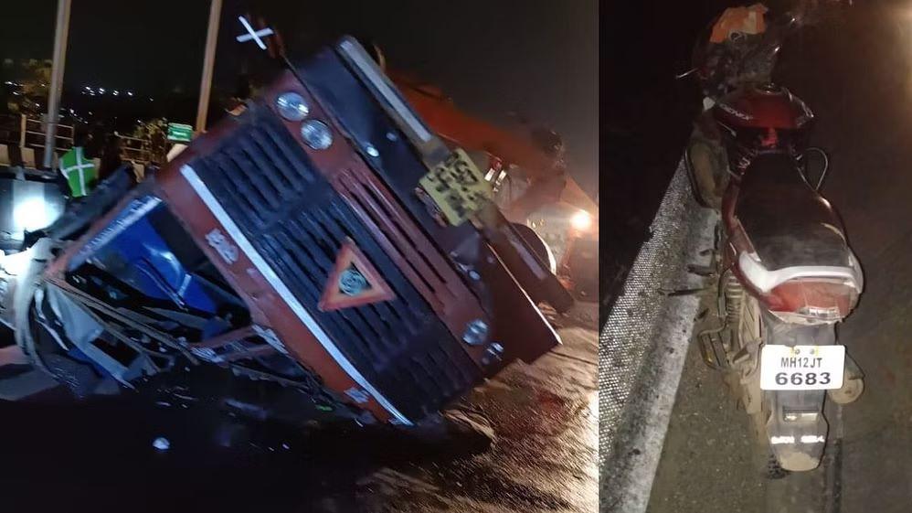 पुणे : साता-याहून पुण्याला निघालेल्या ट्रेलर ट्रकचा अपघात आज (मंगळवार) पहाटेच्या सुमारास पुणे मुंबई महामार्गावर झाला. या अपघातात मदत कार्य करण्यासाठी धावलेल्या युवकाने स्वत:चा जीव जाऊ शकताे अशी शंका निर्माण झाल्याने त्याने दरीपुलावरुन खाली तलावात उडी मारली.