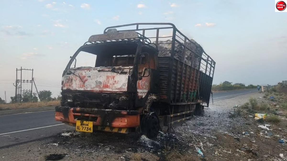 पुणे-नाशिक महामार्गावर ‘आयशर जळुन खाक’