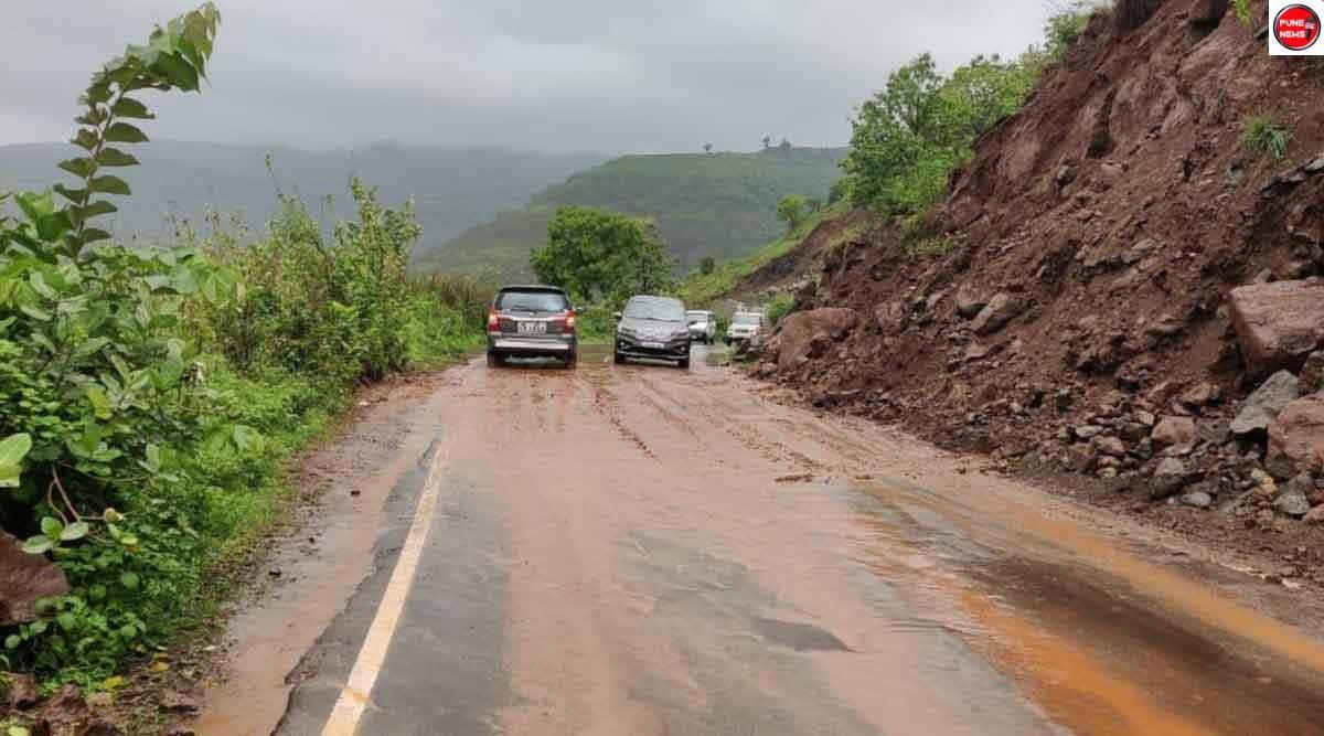 पुणे : जिल्ह्याच्या घाटमाथ्यावर सध्या कोसळत असलेल्या मुसळधार पावसामुळे श्री क्षेत्र भीमाशंकर कडे जाताना पोखरी घाटामध्ये दरड पडली होती. सार्वजनिक बांधकाम विभागाने तातडीने ही दरड बाजूला करून रस्ते वाहतूक पूर्ववत केल्याचे जिल्हा प्रशासनाकडून सांगण्यात आले.