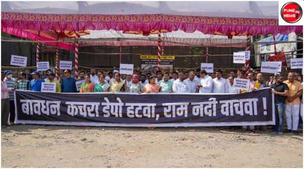 पुणे : ”बावधन कचरा डेपो हटवा राम नदी वाचवा”, ”रद्द करा रद्द करा कचरा डेपो रद्द करा” अशा विविध घोषणांनी प्रस्तावित बावधन कचरा डेपोचा परिसर आज (रविवार) दणाणून गेला. तीन वर्षाच्या बालकापासून ते 88 वर्षांच्या ज्येष्ठ नागरिकापर्यंत शेकडो पर्यावरणप्रेमींनी मानवी साळखीव्दारे आपली ताकद दाखवत बावधन कचरा प्रकल्पाला असलेला आपला विरोध प्रदर्शित केला. यानिमित्ताने पहिल्यांदाच हजारो नागरिक, पर्यावरण क्षेत्रात काम करणा-या स्वयंसेवी संस्था, पर्यावरण तज्ज्ञ, सर्वपक्षीय स्थानिक नेते रस्त्यावर उतरले होते.