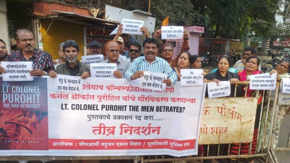 पुणे : ले. कर्नल पुरोहित ‘द मॅन बेटरेड’ पुस्तक प्रकाशन सोहळा; पुण्यात भीम आर्मी बहुजन एकता आणि मूलनिवासी मुस्लिम मंचाचे आंदोलन