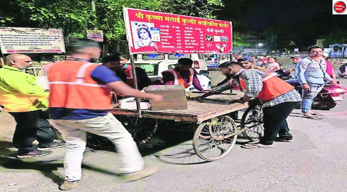 महापालिकेच्या अतिक्रमण विभागाने अधिकृत फेरीवाल्यांना रात्री दहा वाजेपर्यंत व्यवसाय करण्याची परवानगी दिली आहे. व्यवसायाची वेळ संपल्यानंतर व्यवसायाचे साधन, साहित्य आणि अन्य गोष्टी हटविणे पदपथ आणि रस्त्यावरील जागा मोकळी करणे आवश्यक आहे. मात्र अधिकृत फेरीवाल्यांकडून जागा मोकळी केली जात नसल्याचे अतिक्रमण विभागाच्या निदर्शनास आले होते. परवानधारक फेरीवाल्यांकडून अटी-शर्तीचे उल्लंघनही होत आहे. त्यामुळे दैनंदिन व्यवसायाची साधने, साहित्य हटवून जागा मोकळी न करणाऱ्यांवर कारवाई सुरू करण्यात आली होती. मध्यवर्ती भागाबरोबरच उपनगरांमध्ये रात्री दहा वाजल्यानंतर कारवाई करण्यात येत होती. त्याला संघटनांनी विरोध दर्शविला होता. कारवाईवेळी पंचनामा केला जात नसल्याचा आरोपही संघटनांनी केला होता. कारवाईवरून पथारी संघटना आणि अतिक्रमण विभागात वाद सुरू झाल्याने सध्या कारवाई थांबवली आहे. रात्रीची कारवाई थांबवली असली तरी दुपारी दोन ते रात्री दहा या कालावधीत कारवाई नियमित सुरू राहील, असे प्रशासनाकडून सांगण्यात आले. अधिकृत परवानाधारक व्यावयायिकांनी मुदतीमध्येच व्यवसाय करावा आणि साहित्य तातडीने उचलावे, असे आवाहन अतिक्रमण निर्मूलन विभागाकडून करण्यात आले आहे