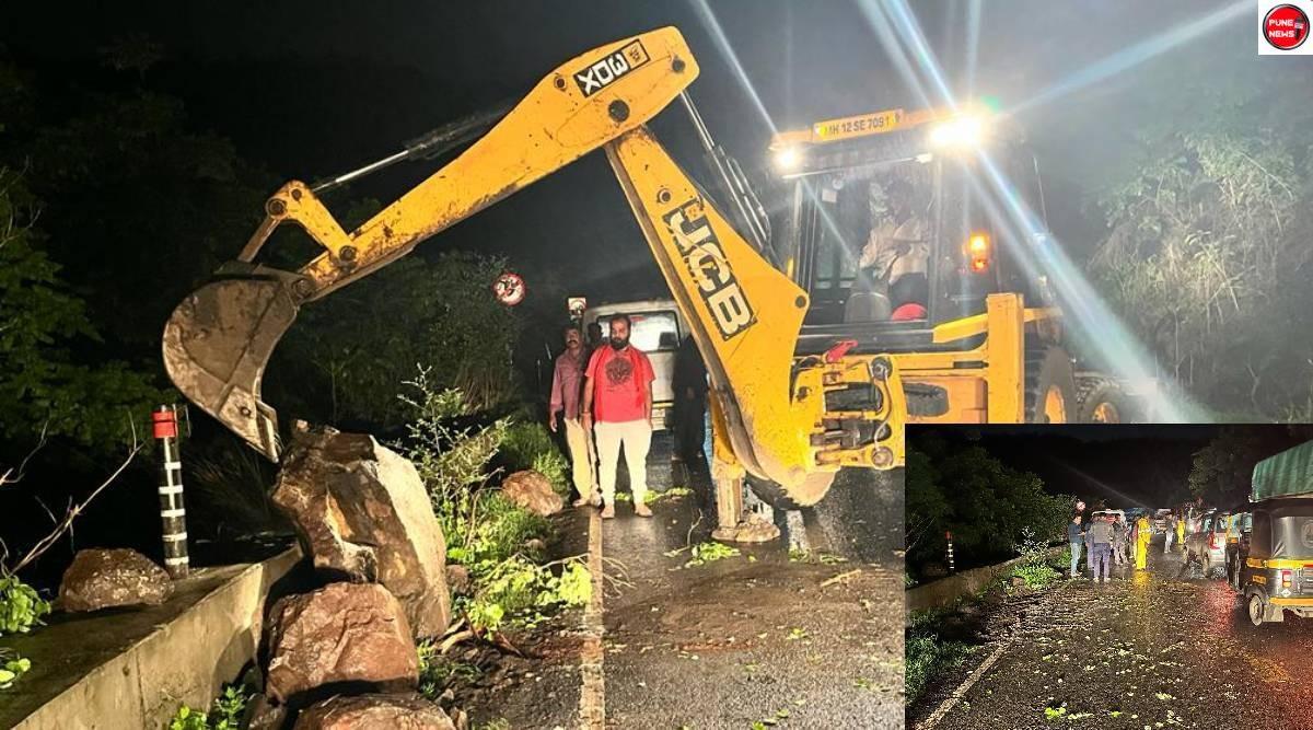 या सर्व घडामोडी दरम्यान कात्रजच्या जुन्या बोगद्यापासून ३०० मीटर अंतरावर रात्री पावणे दहा वाजण्याच्या सुमारास दरड कोसळण्याची घटना घडली. ही माहिती पुणे महापालिकेच्या आपत्ती विभागाला कळताच, अग्निशामक विभाग, पाटबंधारे विभागाचे अधिकारी व कर्मचारी घटनास्थळी पोहचलवे. त्यानंतर तत्काळ रस्त्यावरील दरड जेसीबीच्या मदतीने बाजूला केली. त्यानंतर तेथील मार्गावरील वाहतूक सुरळीत करण्यात आल्याचे पुणे महापालिकेच्या अधिकाऱ्यांकडून सांगण्यात आले.