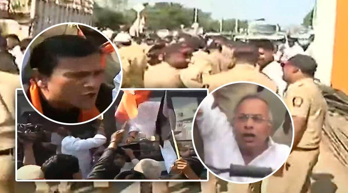 यावेळी नितीन सरदेसाई म्हणाले,“ पोलिसांकडे कोणतेही आदेश नाहीत. लोकाशाहीच्या मार्गाने निषेध करण्याचा आम्हाला अधिकार आहे. आमचे विविध ठिकाणाहून कार्यकर्ते आलेले आहेत, सभेच्या ठिकाणी ते पोहचतील. पोलीस अन्यायकारक पद्धतीने आम्हाला इथे थांबवत आहेत. आम्ही विचारलेल्या एकाही प्रश्नाचं उत्तर त्यांच्याकडे नाही.”