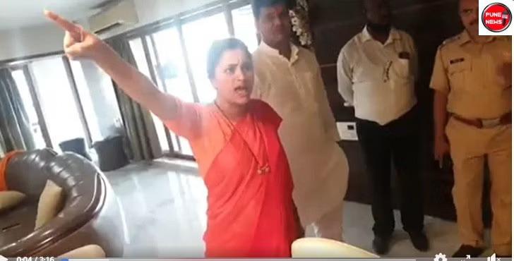 मुंबई: पंतप्रधान नरेंद्र मोदींचा दौरा असल्याचे कारण देत खासदार नवनीत राणा आणि आमदार रवी राणा यांनी 'मातोश्री'वर जाणार नसल्याचं जाहीर केलं. यानंतर आज, दुपारच्या सुमारास नाट्यमय घडामोडी घडल्या. खार येथील राणा दाम्पत्याच्या घरी दुपारी पोलीस अधिकारी पोहोचले. त्यांना पोलीस ठाण्यात घेऊन जाण्याच्या तयारीत पोलीस अधिकारी (Mumbai Police) आले होते. मात्र, नवनीत राणा आणि रवी राणा यांनी स्पष्ट शब्दांत नकार दिला. यावेळी नवनीत राणा या त्यांच्याशी चर्चा करणाऱ्या पोलीस अधिकाऱ्यावर भडकल्याचे व्हिडिओत दिसत होते. आवाज खाली करा, आवाज खाली करा...आम्ही लोकप्रतिनिधी आहोत, तुम्ही निघून जा, असं त्या अधिकाऱ्याशी बोलताना दिसत होत्या.