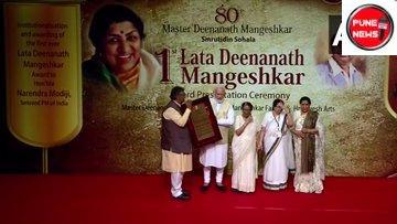 मुंबई: : मुंबईतील माटुंगा येथील षण्मुखानंद नाट्यगृहात आज सायंकाळी मास्टर दिनानाथ मंगेशकर स्मृती सोहळा संपन्न झाला. या सोहळ्यात पहिला लता मंगेशकर पुरस्काराचे वितरण करण्यात आले. यावेळी नरेंद्र मोदी यांनी लता मंगेशकर यांच्या आठवणींना उजाळा दिला. मी हा पुरस्कार सर्व देशवासियांना समर्पित करत आहे. हा पुरस्कार जनतेचा आहे. माणूस आपल्या वयाने नाहीतर आपल्या कार्याने मोठा असतो, अस लतादीदी कायम म्हणायच्या असंही नरेंद्र मोदी म्हणाले. दीदींनी संगीतात अस स्थान निर्माण केलं की त्यांना त्या क्षेत्रातील सरस्वती मानतं होते. सिनेमातील चार पाच पिढ्यांना त्यांनी आवाज दिला आहे. विश्व त्यांना स्वरसाम्राज्ञी मानतं होते, असंही मोदी म्हणाले.