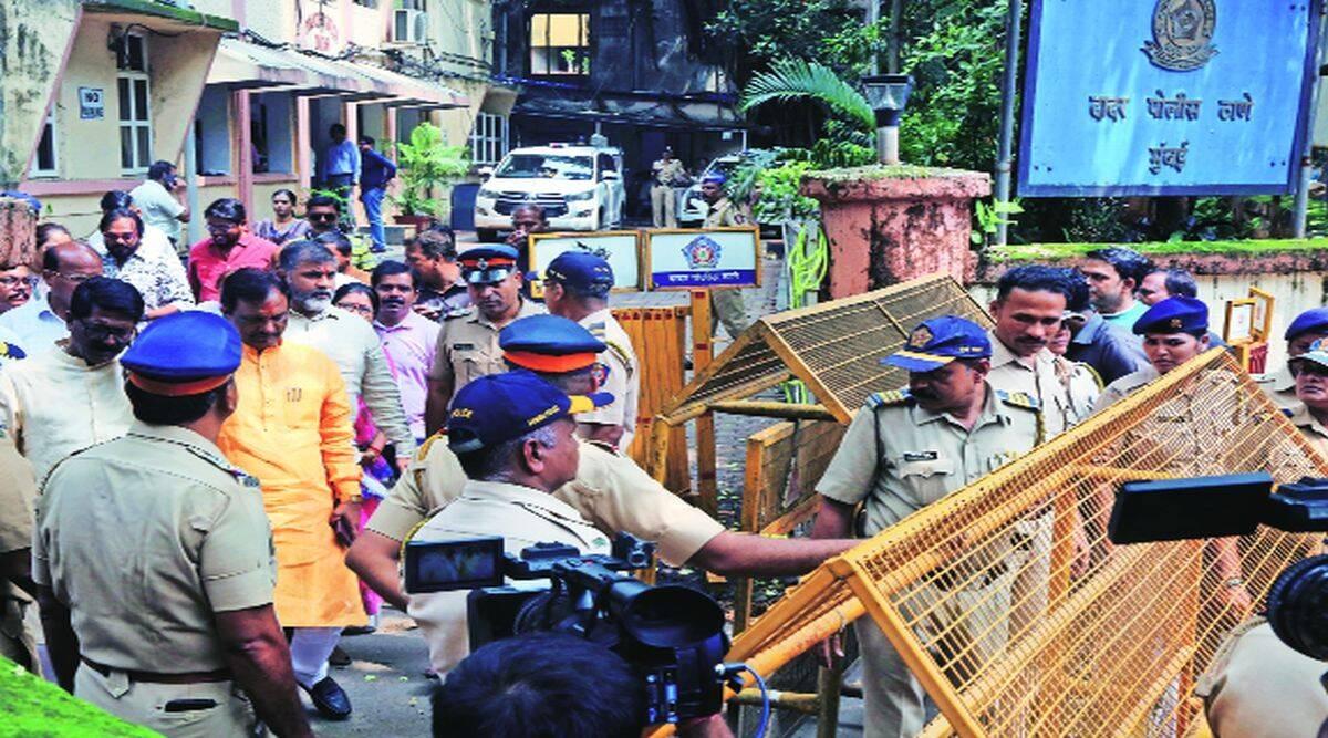 मुंबई महापालिका निवडणुकीच्या निमित्ताने शिवसेना-शिंदे गटात जोरदार राजकीय संघर्ष सुरू झाला असून, दसरा मेळावा कोणाचा यावरून कुरघोडीचे राजकारण सुरू आहे. अशा तणावाच्या वातावरणात अनंत चतुर्दशीला गणपती विसर्जनाच्या वेळी प्रभादेवी परिसरात शिवसेना आणि शिंदे गटाने शेजारी-शेजारी व्यासपीठ उभारले होते. त्यावेळी राजकीय टोलेबाजीतून त्यांच्यात शाब्दिक बाचाबाची होऊन हाणामारी झाली. शिवसैनिकांनी शिंदे गटातील शाखाप्रमुख संतोष तेलवणे यांना मारहाण केल्याप्रकरणी सुमारे १२ शिवसैनिकांसह इतर २५ जणांवर दंगलीचा गुन्हा दाखल झाला. शिवसेना विभागप्रमुख महेश सावंत व चार शिवसैनिकांना पोलिसांनी अटक केली. तत्पूर्वी, शिंदे गटाचे आमदार सदा सरवणकर तिकडे आले व त्यांनी आक्रमक भूमिका घेतली. त्यातून दोन्ही गटांतील वातावरण पेटले होते. शिवसैनिकांना अटक झाल्याचे कळताच शिवसेनेचे खासदार अरविंद सावंत, आमदार सुनील शिंदे, सचिन अहिर, विधान परिषदेतील विरोधी पक्षनेते अंबादास दानवे यांनी पोलीस ठाण्याकडे धाव घेतली. शिवसेना-शिंदे गटातील कार्यकर्त्यांमधील भांडणावेळी पोलीस ठाण्याच्या आवारात शिंदे गटाचे आमदार सदा सरवणकर यांनी गोळीबार केल्याचा आरोप शिवसेनेने केला. त्यांच्यावर कारवाईसाठी शिवसेनेने आक्रमक भूमिका घेतली. त्यामुळे राजकीय वातावरण तापले. एकतर्फी कारवाई चालणार नाही. सत्तेचा गैरवापर करून शिवसैनिकांवर कारवाई झाली आहे. शिवसैनिक दादागिरी सहन करत नाहीत व करणारही नाहीत, असा इशारा अंबादास दानवे यांनी दिला. शिवसेना कार्यकर्त्यांवर चोरीचा खोटा गुन्हा दाखल केला असून तो काढून घेण्याची व गोळीबार करणाऱ्या आमदार सदा सरवणकर यांच्यावर गुन्हा दाखल करण्याची मागणी आम्ही केली. आमच्या मागण्या मान्य झाल्या नाहीत तर मग खरी शिवसेना काय आहे, हे ज्यांना कुणाला पाहायचे आहे त्यांना कळेल, असा इशारा अरविंद सावंत यांनी दिला. ठाकरे सरकारने गुंडांचा बंदोबस्त केला होता. त्यांच्या कारकीर्दीत असे कृत्य करण्याची कुणाची हिंमत झाली नाही. आता सत्ताधारी आमदारच अशी कृत्ये करत आहेत, असे सावंत म्हणाले. अखेर शिवसैनिकांवरील चोरीचा आरोप हटवण्यात आला आणि त्यांची जामिनावर सुटका झाली.