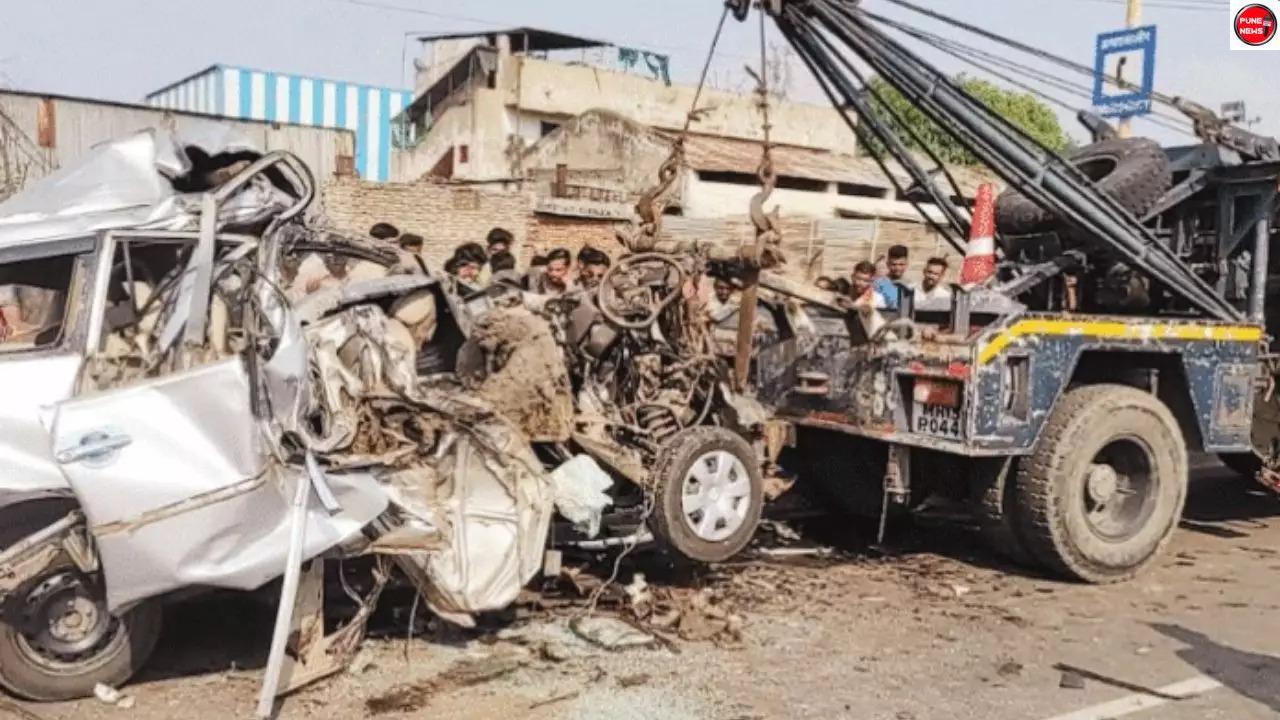 दुपारच्या सुमारास महामार्गावर वाहनेही कमी होती. यामुळे इनोव्हा चालकाने गाडीचा वेग कमी केला नाही. बाजार समिती दीडशे मीटर अंतरावर असतानाच अलिकडे महामार्गावर एका बाजूला थांबलेल्या ट्रकला इनोव्हाने मागून जोरात धडक दिली. यामध्ये ५ जणांचा मृत्यू झाला आहे. अपघातानंतर मोठा आवाज झाल्याने परिसरातील लोक लगेचच तेथे दाखल झाले. पोलिसही काही वेळात त्याठिकाणी आले आणि त्यांनी जखमींना पहिले बाहेर काढून उपचारासाठी शासकीय रुग्णालयात पाठविले आहे.