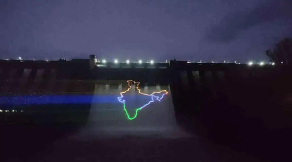 कराड : देशभर दिमाखात साजरा होत असलेल्या स्वातंत्र्याच्या अमृत महोत्सवाच्या पूर्वसंध्येला कोयना धरणातून सोडण्यात येत असलेल्या पाण्यावर विजेच्या लेसर किरणांद्वारे “आझादी का अमृत महोत्सव” यास त्या अनुषंगाने दृश्ये प्रदर्शित करण्यात आली आहेत. महाराष्ट्राची वरदायिनी अशी ओळख असलेल्या कोयना धरण्याच्या दरवाजातून सध्या पाणी सोडण्यात येत आहे. हे पाणी धरणाच्या भिंतीवरून फेसाळत कोयना नदीकडे झेपावत असताना कोयना धरण प्रशासनाने याचा सुरेख वापर करुन, स्वातंत्र्याच्या अमृत महोत्सवाच्या निमित्ताने देशाचा नकाशा, नाव, आझादी का अमृत महोत्सव, छत्रपती शिवाजी महाराजांचे छायाचित्र अशी दृश्ये लेसर किरणांचा वापर करुन या पाण्यावर साकारली आहेत. रात्रीच्या अंधारात ही दृश्ये अतिशय खुलून दिसत आहेत आणि याची चित्रफित कोयना धरण प्रशासनाने समाज माध्यमांवर प्रदर्शित केली आहेत. त्याला मोठा प्रतिसाद मिळत हा सुखद अनुभव घेत या उपक्रमाचे लोकांकडून कौतुकही होत आहे.