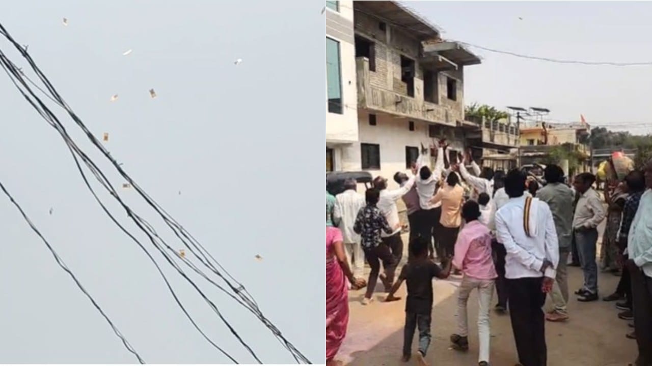 अकोला जिल्हातल्या मनारखेड गावात हनुमान मूर्ती प्रतिष्ठापणा सोहळ्यात चक्क मंदिराच्या कळसावरून नोटांची उधळण झाली. या नोटा वेचण्यासाठी भाविकांची अक्षरश: झुंबड उडाली !