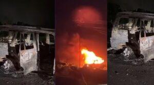 Lonavala Scorpio accident drunk driver kills one injures another: णावळ्यात भरधाव स्कॉर्पियो कारने दोन जणांना उडवल्याची घटना घडली आहे. या अपघातामध्ये एकाचा जागीच मृत्यू झाला आहे, तर एकजण गंभीर जखमी झाला आहे. पोलिसांनी कार चालकाला ताब्यात घेतले असून चौकशी करण्यात येत आहे. अपघातात एका व्यक्तीचा मृत्यू झाल्यानंतर संतापलेल्या जमावाने कारला आग लावली. भीषण आगीमध्ये चारचाकी गाडी पूर्णपणे जळून खाक झाली.