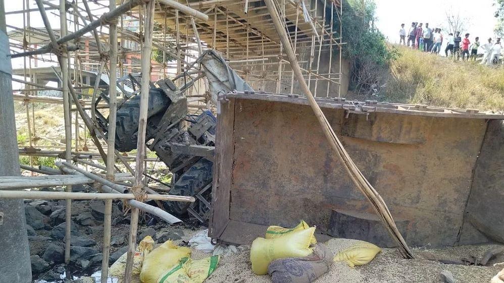 भंडारा : शेतातील माल घेऊन जाणारा ट्रॅक्टरला ट्रकने साइड न दिल्याने ट्रॅक्टर सरळ पुलावरुन ३० फुट चुलबन्द नदीत कोसळले. सदर घटना भंडारा जिल्ह्याच्या लाखांदुर येथे पवनी- लाखांदुर मार्गावरिल शिवमंदीर जवळील पुलावर घडली. यात ट्रॅक्टरवरील एक जागीच ठार तर दोघे गंभीर जखमी झाले आहे.