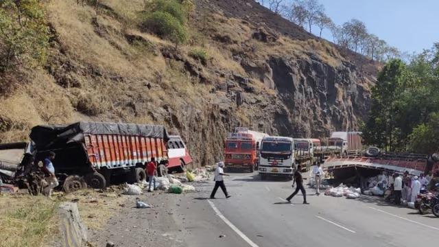 याबाबत सविस्तर माहिती अशी की, नाशिक मुंबई महामार्गावर नवीन कसारा घाटात ट्रकचा ब्रेक फेल झाल्याने मोठा अपघात झाल्याचे समोर आले आहे. घाटामध्ये अचानक ट्रकचे ब्रेक फेल झाल्याने ओव्हरटेक करून जात असताना पुढे जाणाऱ्या बस व भंगार वाहतूक करणाऱ्या ट्रकला जोरदार धडक दिली.