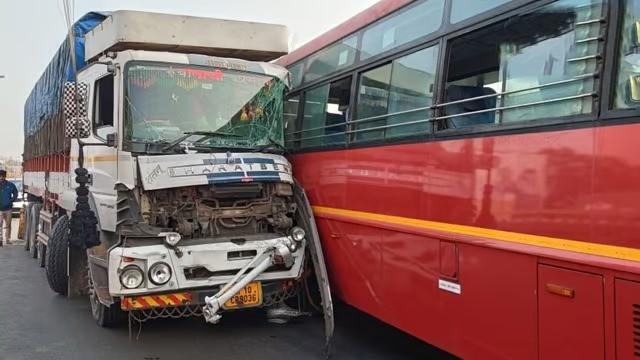 रस्त्यावर मोठा पत्रा आडवा पडल्याने सदर ठिकाणी एक एस टी बस, एक पिक अप, एक मोटारगाडी ही तीन वाहने थांबली होती. तितक्यात पाठिमागून भरधाव वेगात आलेल्या ट्रकने या तीन वाहनांना पाठीमागून धडक दिली. या अपघातात मोटरगाडी उड्डाणपुलावरुन खाली कोसळली. तर एस टी बस चालकाच्या प्रसंगावधानामुळे पुलावरून कोसळली नाही. त्यामुळे मोठा अनर्थ टळला. सुदैवाने या अपघातात कोणाला गंभीर दुखापत झाली नाही.