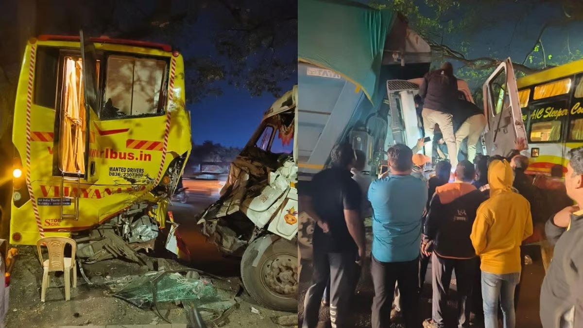 इथून शुक्रवारी सकाळी ६ वाजेच्या सुमारास प्रवाशांना घेऊन ट्रॅव्हल्स बाहेर पडत होती. त्यावेळी मुंबईच्या दिशेकडून भरधाव वेगाने आलेल्या डंपरने ट्रॅव्हल्सला पाठीमागून जोराची धडक दिली. ही धडक इतकी भीषण होती, की दोन्ही वाहनांचा चक्काचूर झाला.
