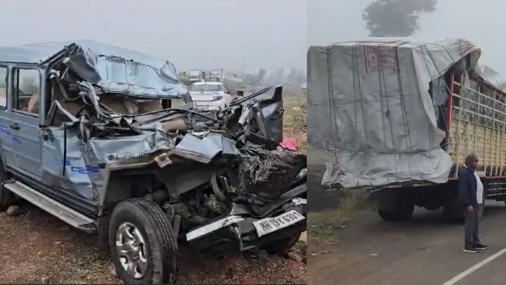 मिळालेल्या माहितीनुसार, मंचरजवळ भल्या पहाटे हा भीषण अपघात झाला आहे. नाशिकवरुन भोसरीच्या दिशेने जात असताना जीपने ट्रकला पाठीमागून जोरदार धडक दिली. ही धडक इतकी जोरदार होती की जीपच्या पुढील भागाचा अक्षरश: चक्काचूर झाला आहे. दाट धुकं असल्याने समोरील ट्रकचा अंदाज न आल्याने हा अपघात झाल्याचं बोललं जात आहे.