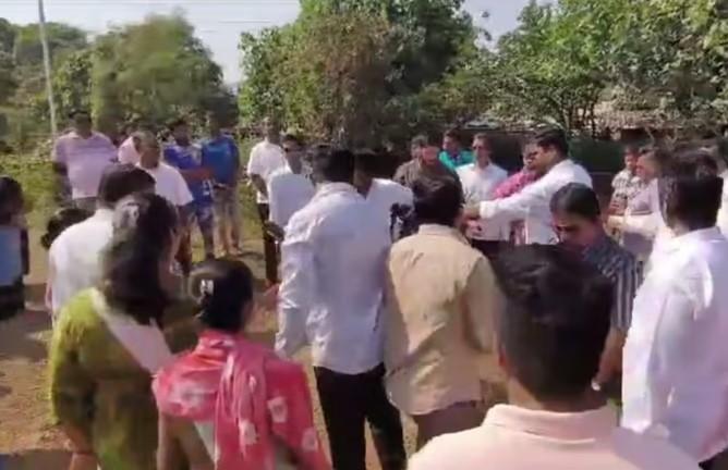 पाणी योजनेचे काम अपूर्ण असल्याने यासंदर्भात चर्चा करण्यासाठी ग्रामस्थ, ठेकेदार आणि पाणी पुरवठा विभागाचे अधिकारी यांची एकत्रित बैठक आयोजित करण्यात आली होती. या बैठकीत पाणी का मिळत नाही? असा प्रश्न उपस्थित करण्यात आल्यानंतर या प्रश्नाचे समाधान कारक उत्तर ठेकेदार विवेक पाटील देवू शकला नाही. त्यामुळे संतप्त झालेल्या ग्रामस्थ आणि महिलांनी त्याला बैठकीतच चोप दिला. या घटनेचा व्हिडीओ सध्या समाज माध्यमांवर व्हायरल होत आहे.