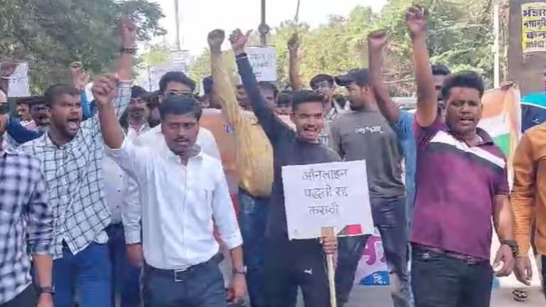 Amravati News : गेल्या काही दिवसांपासून राज्यात तलाठी भरतीच्या निकालावरुन नवा वाद उभा राहिला आहे. राज्य सरकारकडून घेण्यात आलेल्या तलाठी भरती प्रक्रियेत मोठा गैरप्रकार झाल्याचा आरोप करण्यात येत आहे. ही भरती प्रक्रिया रद्द करुन नव्याने पदभरती करण्यात यावी अशी मागणी विरोधकांकडून होताना दिसत आहे. याच मागणीसाठी अमरावतीमध्ये विद्यार्थी आक्रमक झाले असून जिल्हाधिकारी कार्यालयावर मोर्चा काढण्यात आला आहे.