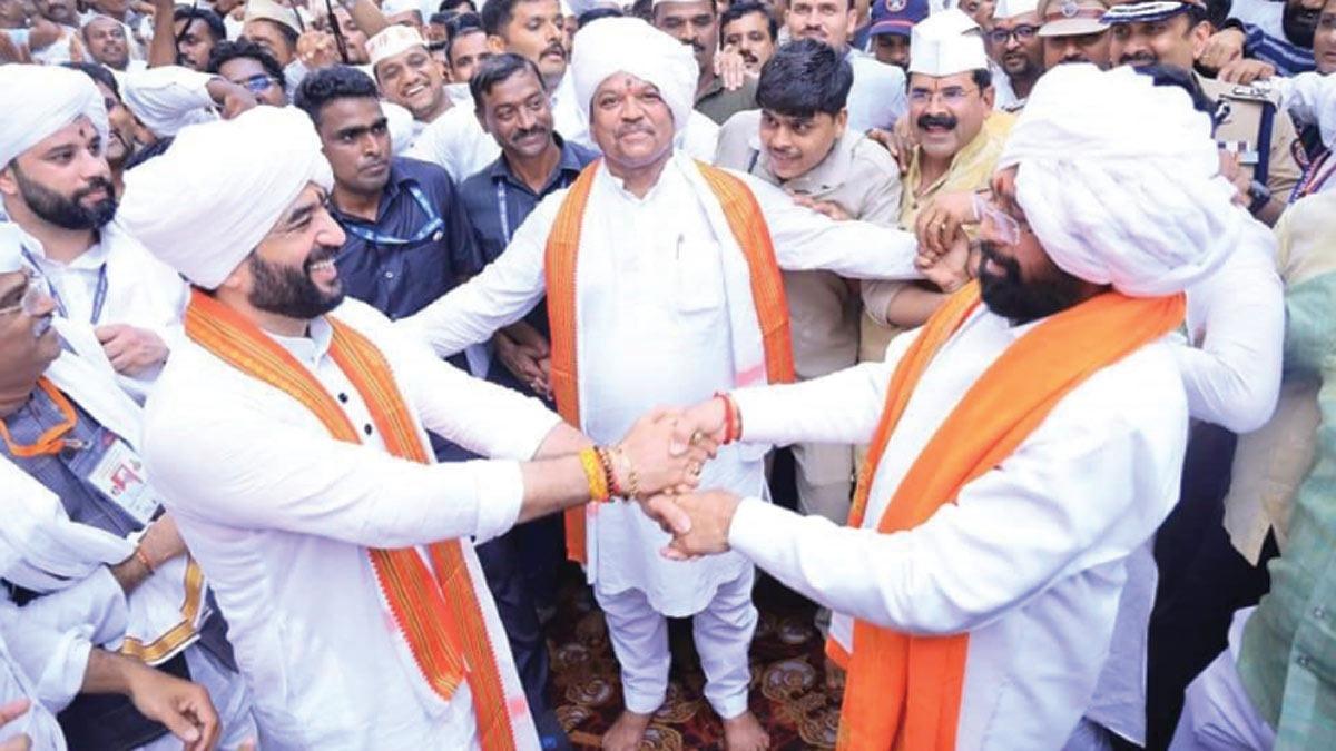 मुख्यमंत्री शिंदे याचा ताफा दुपारी तीन वाजता माऊली मंदिराच्या आजोळघरी आला. तेथूनच मदिरात प्रवेश करीत व्यानी समाधीचे दर्शन घेतले. आळंदी देवस्थानच्या वतीने अड. राजेंद्र उमाप, योगी निरंजननाथ, डी. भावार्थ देखण पानी फेटा बांधून त्यांचा सन्मान केला. यावेळी वीणा मंडपासमोर त्यांनी केंद्रीय राज्यमंत्री मुरलीधर मोहोळ तसंच खासदार श्रीरंग बारणे यांच्यासमवेत फुगडी खेळण्याचा आनंद लुटला.