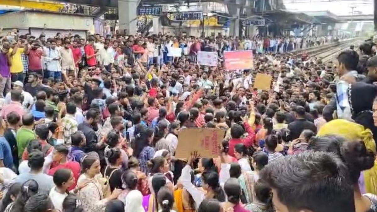 Badlapur : बदलापुरातील नामांकित शाळेत चिमुकल्या मुलींवरील अत्याचारानंतर नागरिकांमध्ये संतापाची लाट उसळली आहे. या घटनेच्या विरोधात संतप्त नागरिकांनी शाळेच्या समोर जमत प्रशासनाच्या विरोधात घोषणाबाजी केली. त्यानंतर या संतप्त जमाव बदलापूर रेल्वे स्टेशनजवळ पोहोचला. त्यानंतर हे संतप्त नागरिक बदलापूर स्टेशनच्या प्लॅटफॉर्म क्रमांक २ आणि ३ क्रमांकाच्या रेल्वे रुळावर उतरले. रेल्वे थांबवण्यासाठी संतप्त आंदोलकांनी रेल्वे रुळावर उतरले आहेत. शेकडो नागरिक रेल्वे रुळावर उतरल्याने मध्य रेल्वे विस्कळीत झाली आहे.