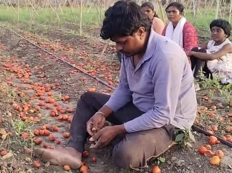 बीड जिल्ह्यातील आष्टी शहरातील मिस्त्री काम करत शेतकरी राम गोरख शेळके यांनी ऐंशी हजार रुपये खर्च करून टोमॅटोची बाग फुलवली होती. सव्वा एक्करमध्ये सात हजार टोमाॅटोच्या झाडाची लागड करुण एप्रिलमध्ये ठिंबकने पाणी देऊन शेती फुलवली होती. ऐन तोडणीला आलेली बाग अवकाळीने सर्वच शेतात पाणी साचल्याने सर्व टोमॅटोची बाग जळून गेली. आज शेतात सर्वत्र फक्त लालबुंद झालेली टोमॅटो सडून गेलेली आहेत.