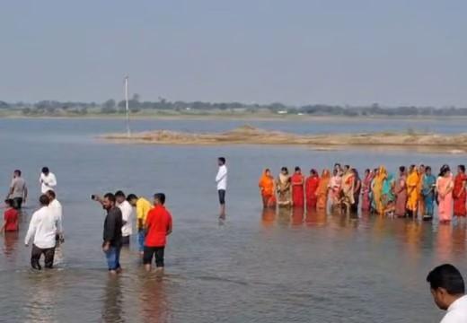 संतोष देशमुख हत्या प्रकरणातील फरार असलेल्या आरोपींना तात्काळ अटक करावी, या मागणीसाठी आज मस्साजोग ग्रामस्थांकडून जलसमाधी आंदोलन करण्यात येत आहे. अख्ख गाव तळ्यात उतरले आहेत. आंदोलनकांमध्ये पुरूषांसोबत महिलां देखील सहभागी झाल्या आहेत.
