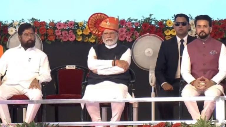 पंतप्रधान मोदींसह मुख्यमंत्री एकनाथ शिंदे, उपमुख्यमंत्री देवेंद्र फडणवीस, उपमुख्यमंत्री अजित पवार आणि केंद्रीय मंत्री अनुगान ठाकूर यांच्यासह अनेक दिग्गज नेते उपस्थित आहेत. या कार्यक्रमात बोलताना मुख्यमंत्री एकनाथ शिंदे यांनी पंतप्रधान मोदींचे तोंडभरुन कौतुक केले.