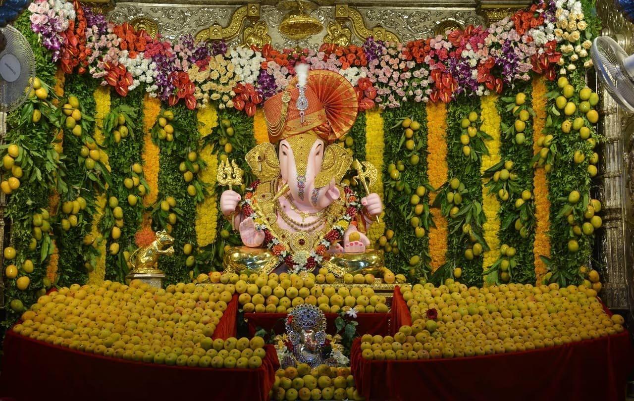 Dagdusheth Ganapati Mandir Pune : अक्षयतृतीयेच्या मुहूर्तावर पुण्यातील प्रसिद्ध दगडूशेठ गणपतीला ११ हजार आंब्यांचा महानैवेद्य दाखवण्यात आला आहे. श्रीमंत दगडूशेठ हलवाई सार्वजनिक गणपती ट्रस्ट आणि सुवर्णयुग तरुण मंडळातर्फे मंदिरात आंबा महोत्सव आयोजित करण्यात आला. या आंब्यांच्या प्रसादाचे वाटप रुग्णालयातील रुग्णांना आणि सामाजिक संस्थांमध्ये करण्यात येणार आहे.