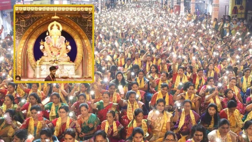 Ganpati Atharvashirsha Dagadusheth Temple : ओम नमस्ते गणपतये… ओम गं गणपतये नमः… मोरया, मोरया… च्या जयघोषाने तब्बल ३५ हजार महिलांनी एकत्र येत अथर्वशीर्ष पठणातून गणरायाला नमन केले. ॠषीपंचमीनिमित्त आयोजित सोहळ्यात उर्जेने भारलेल्या वातावरणामध्ये हजारो महिलांच्या गर्दीचा उच्चांक यानिमित्ताने पहायला मिळाला. पारंपरिक वेशात मध्यरात्री १ वाजल्यापासून महिलांनी या उपक्रमाकरीता हजेरी लावण्यास सुरुवात केली. गणेश नामाचा जयघोष करीत अथर्वशीर्षासोबत महाआरती करीत महिलांनी स्त्री शक्तीचा जागर केला.