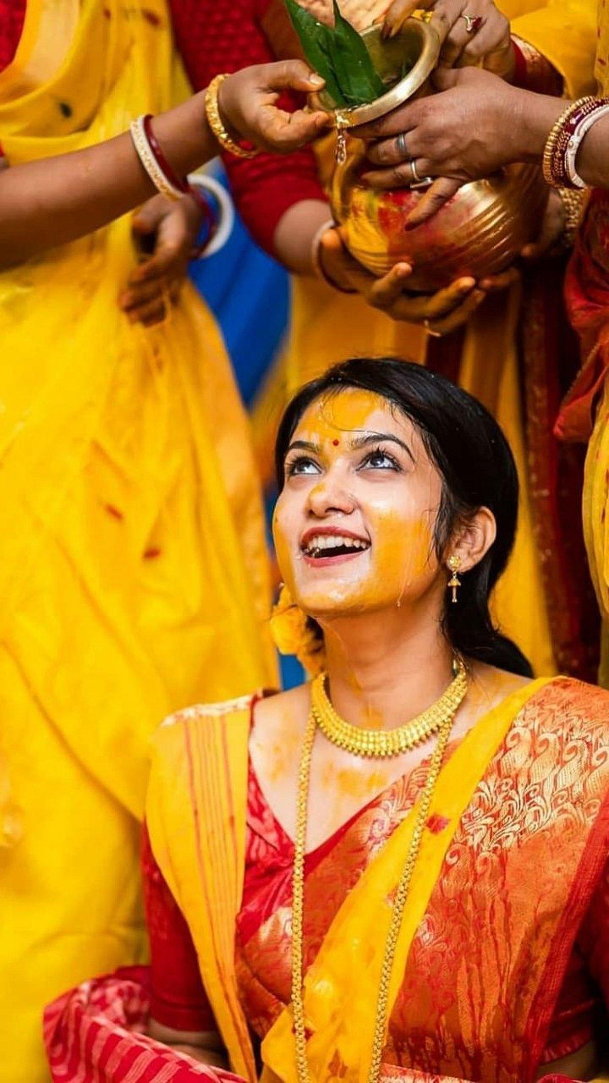 हळदीच्या समारंभात वधू-वरांना हळद लावली जाते. जर आपण दुसऱ्या रंगाचे कपडे घातले, तर हळदीचे डाग त्यावर उठून दिसतात आणि कपडे खराब होतात. पिवळ्या कपड्यांवर हळदीचे डाग मिसळून जातात, त्यामुळे हा रंग निवडतात.