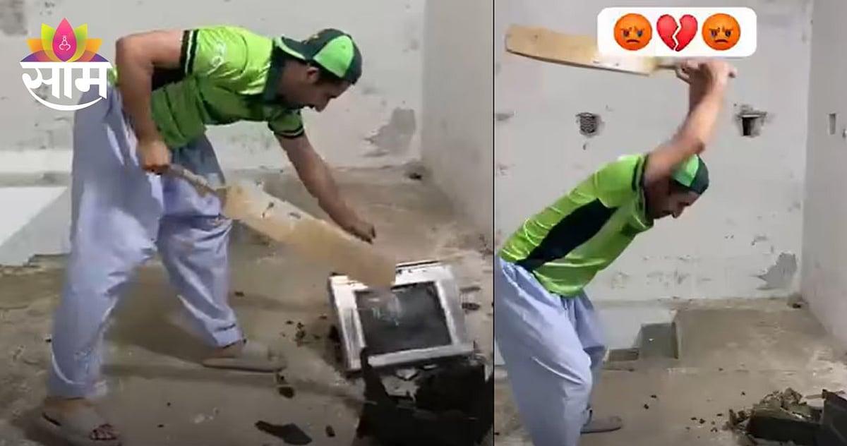 भारताकडून मिळालेल्या पराभवानंतर पाकिस्तानी चाहत्यांमध्ये प्रचंड निराशा पाहायला मिळाली. सोशल मीडियावर एका चाहत्याचा व्हिडिओ तुफान व्हायरल होत आहे. व्हिडिओत तो रागाच्या भरात आपल्या घरचा टीव्ही फोडताना दिसत आहे. "भारताने पुन्हा हरवलं, संतापून टीव्ही फोडला," अशी पोस्ट व्हिडिओवर लिहिली आहे. इतर अनेक चाहत्यांनीही आपण "शॉक आणि डिप्रेशन" मध्ये असल्याचे म्हटले आहे.
