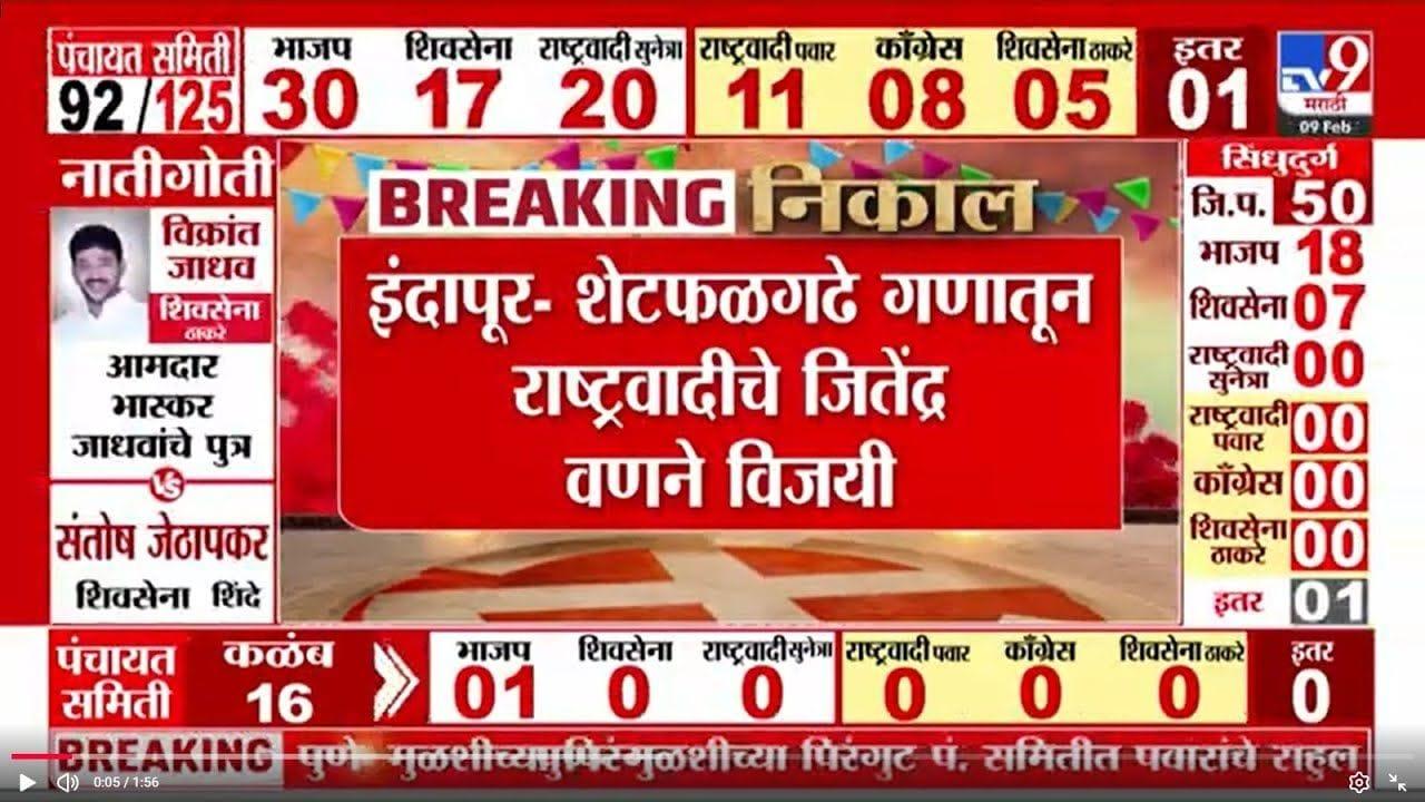 जिल्हा परिषदेमध्ये भाजपने सात जागांवर आघाडी घेत सर्वात मोठा पक्ष म्हणून आपले स्थान निर्माण केले आहे. शिवसेनेने दोन, राष्ट्रवादी काँग्रेसने (दादा गट) एक आणि काँग्रेसने दोन जिल्हा परिषदांवर आघाडी घेतली. शरद पवारांची राष्ट्रवादी आणि ठाकरेंच्या शिवसेनेला जिल्हा परिषदेत खातेही उघडता आले नाही. एकूणच, पंचायत समिती असो किंवा जिल्हा परिषद, भाजप या निवडणुकांमध्ये एक नंबरचा पक्ष ठरला आहे.