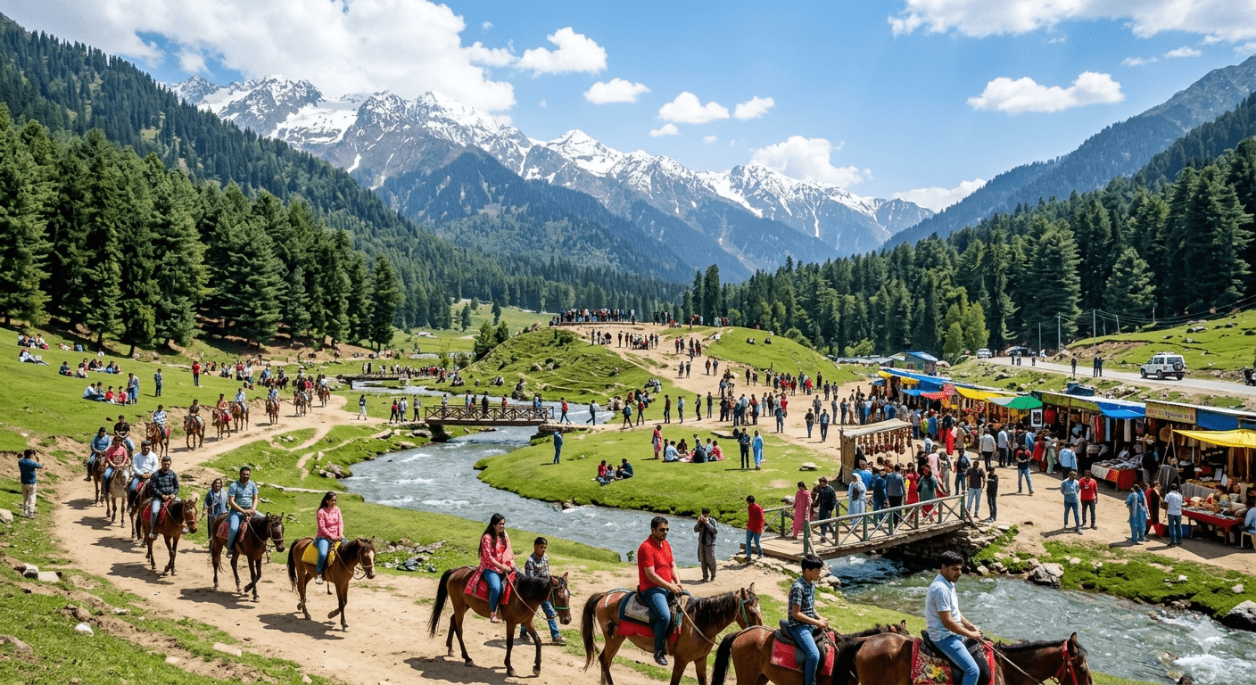 अस्थिरता माजवून काश्मीरचे पर्यटन संपवण्याचा प्रयत्न करणाऱ्या पाकिस्तानला पर्यटकांनी मोठी चपराक लगावली आहे. सध्या पहलगाममध्ये पर्यटकांची मोठी गर्दी असून 'मिनी स्वित्झर्लंड' म्हणून ओळखल्या जाणाऱ्या या भागातील जनजीवन पुन्हा एकदा पूर्ण क्षमतेने सुरू झाले आहे. प्रशासनाने पर्यटकांच्या सुरक्षिततेसाठी कडक सुरक्षा व्यवस्था तैनात केली असून क्यूआर कोड आधारित ओळख प्रणाली लागू केली आहे.