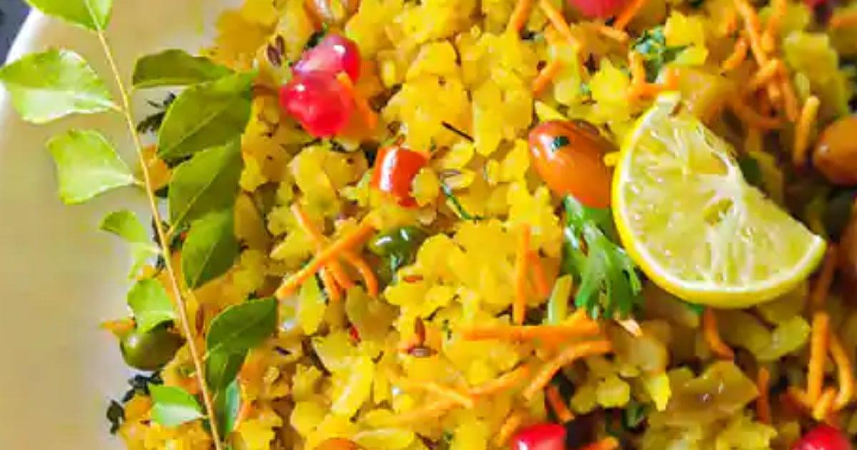 जाड पोहे, चिरलेला कांदा, जिरवन मसाला, साखर, लिंबाचा रस, कढीपत्ता, मोहरी, हळद, मिरची, शेंगदाणे, तेळ, बारीक शेव, कोथिंबीर