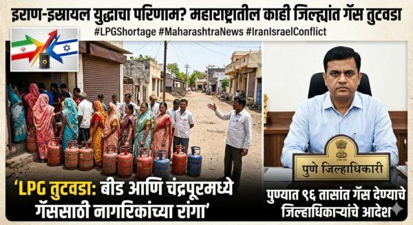 मुंबई : जागतिक स्तरावरील इराण आणि इस्रायल यांच्यातील वाढत्या युद्धजन्य परिस्थितीचा थेट परिणाम आता महाराष्ट्रातील सर्वसामान्यांच्या स्वयंपाकघरावर होताना दिसत आहे. कच्च्या तेलाच्या विस्कळीत पुरवठ्यामुळे राज्यात एलपीजी (LPG) सिलिंडरचा मोठा तुटवडा निर्माण झाला असून, विशेषतः बीड, चंद्रपूर आणि पुणे जिल्ह्यांत परिस्थिती गंभीर बनली आहे.