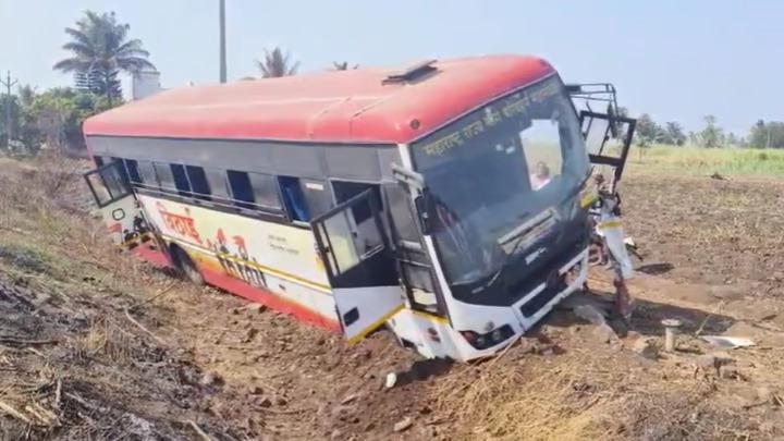 यानंतर बस थेट रस्त्याच्या बाजूला असलेल्या चारीमध्ये जाऊन अडकली. अपघातावेळी बसमध्ये विद्यार्थ्यांसह ४७ प्रवासी होते. यामधील अनेक जण जखमी झाल्याचे सांगण्यात येत आहे. या अपघातानंतर स्थानिकांनी धाव घेत प्रवाशांना बाहेर काढले. अपघातातील जखमींना उपचारासाठी रुग्णालयात दाखल करण्यात आले आहे.