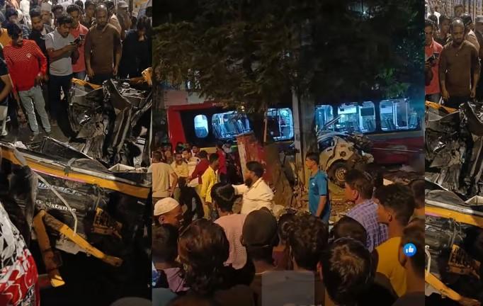 ३२२ क्रमांकाच्या भरधाव बेस्ट बसने धडक रस्त्यावरून चालणाऱ्या धडक दिली. या वेळी रस्त्यावर चालणाऱ्या १० ते १२ लोकांना बसने चिरडलं. बेस्ट बसच्या धडकेत रिक्षा चक्काचूर झाली आहे. या भीषण अपघातानंतर लोकांची घटनास्थळी बघ्यांची एकच गर्दी झाली. या अपघातानंतर काही संतप्त लोकांनी बेस्ट बसची तोडफोड केली. या अपघातातील मृतांचा आकडा वाढण्याची शक्यता आहे.