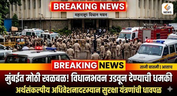 आज सकाळी विधानभवनाला उद्देशून एक अनामिक ईमेल आला. यामध्ये इमारतीत बॉम्ब ठेवल्याचा आणि ती उडवून देण्याचा उल्लेख होता. महत्त्वाचं म्हणजे, सध्या विधानसभेचे अधिवेशन सुरू असल्याने इमारतीत मुख्यमंत्री, उपमुख्यमंत्री, अनेक मंत्री आणि आमदार उपस्थित होते. धमकी मिळताच पोलिसांनी आणि बॉम्ब शोधक व नाशक पथकाने (BDDS) तातडीने संपूर्ण परिसराची कसून तपासणी सुरू केली.