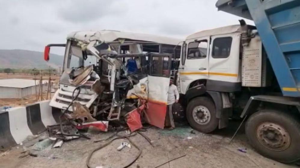 Mumbai Goa Highway Accident: मुंबई गोवा महामार्गावर महाड शहरानजीक नाते खिंड येथे ST बस आणि कोळशाची वाहतुक करणाऱ्या ट्रकचा भीषण अपघात झाला आहे. या भीषण अपघातात बसचे फार मोठे नुकसान झाले आहे.