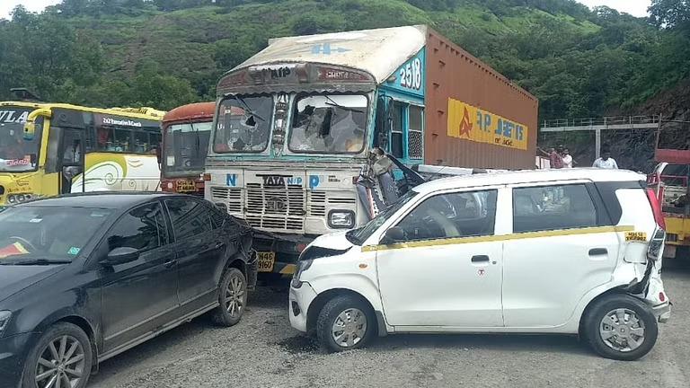 मिळालेल्या माहितीनुसार, खोपोलीजवळील बोरघाटात मुंबई लेनवरती ब्रेक फेल झाल्यामुळे ट्रक चालकाचे नियंत्रण सुटले आणि या ट्रकने एसटी बससह इतर ७ कारना धडक दिली असल्याची प्राथमिक माहिती समोर आली आहे. या अपघातामुळे मुंबई-पुणे एक्स्प्रेस वेवरील वाहतूक काही काळ विस्कळीत झाली होती. वाहतूक पोलिसांनी ही वाहतूक कोंडी सुरळीत केली आहे.