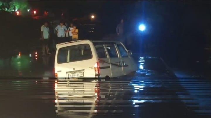 Nandurbar : नंदुरबार जिल्ह्यात होत असलेल्या पावसामुळे जिल्ह्यातील विसरवाडी गावानजीक सरपणी नदीला पूर आला आहे. या नदीवरील छोटा पूल पाण्याखाली गेला आहे. यात वाहन चालकाला रस्ता माहीत नसल्याने या पुलावरून मार्गस्थ होताना रस्त्याचा अंदाज न आल्याने कार पाण्यात वाहून जाताना थोडक्यात वाचली आहे. तर या कारमधील दोघांचे प्राण देखील वाचले आहेत.