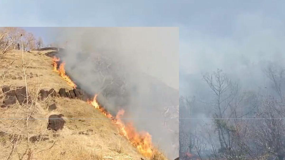 Navapur Hill Fire : नंदुरबार जिल्ह्यातील नवापूर तालुक्यातील मोरकरंजा गावाजवळील माकडदरीच्या डोंगराला आग लागल्याचे चित्र आहे. याठिकाणी जंगलात वणवा पेटल्याने दोन दिवासंपासून आग घुमसत असल्याचे चित्र आहे. हा वणवा विझविण्याचा प्रयत्न सुरु आहे.