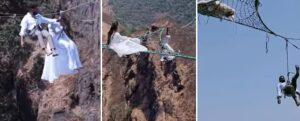 समाज माध्यमांवर अनेक प्रकरणं समोर आली आहेत, जिथे प्री-वेडिंग शूट करताना अपघात घडले. पाण्याच्या प्रवाहात वाहून गेलेले जोडपे, ट्रॅकवर फोटो घेताना मृत्यू, किंवा डोंगरावरून घसरून झालेल्या दुर्घटना या गोष्टी आता दुर्दैवाने सामान्य झाल्या आहेत. त्या एका 'परफेक्ट फोटो'च्या नादात आयुष्याची खेळी नको खेळू. मात्र सध्या असाच एक व्हिडिओ व्हायरल झालेला आहे. जिथे एका नव्या जोडप्यांनी उंच दरीत लटकून प्री वेडिंग फोटो शुट केले आहे.