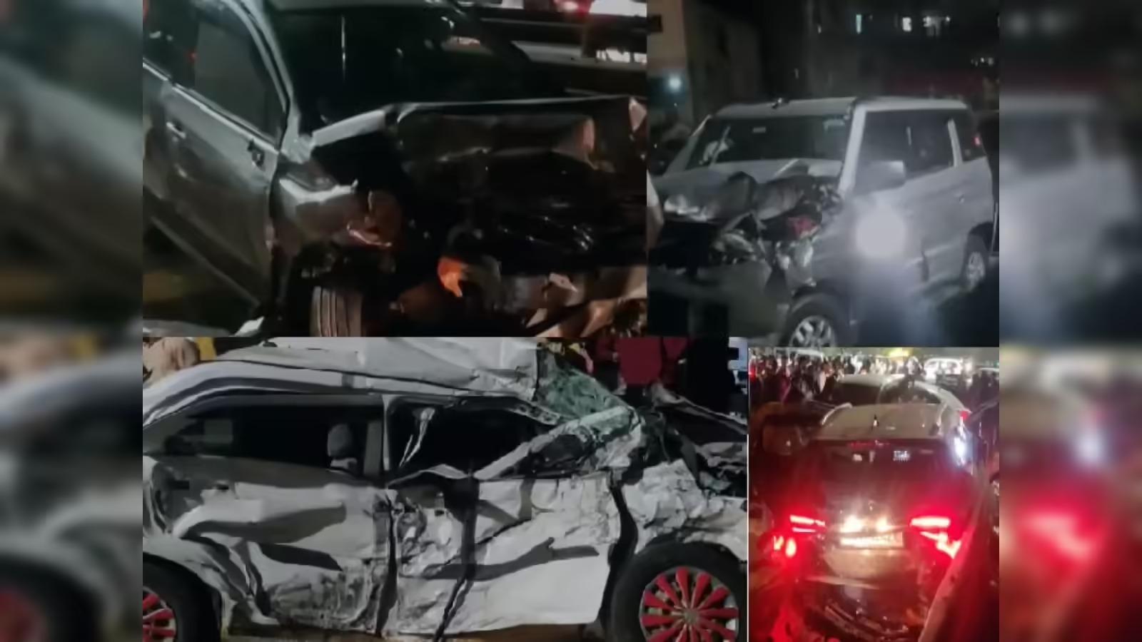 पुण्यात गेल्या काही दिवसांपासून अपघातांच्या घटनांमध्ये वाढ होताना दिसत आहे. अशातच मध्यरात्री वारजे परिसरात एक विचित्र अपघात घडला असून 7 ते 8 वाहनांना एकमेकांना धडक बसली आहे. या अपघातात वाहनांचे मोठ्या प्रमाणात नुकसान झाले असून, घटनेचा व्हिडीओ सध्या सोशल मीडियावर व्हायरल होत आहे.