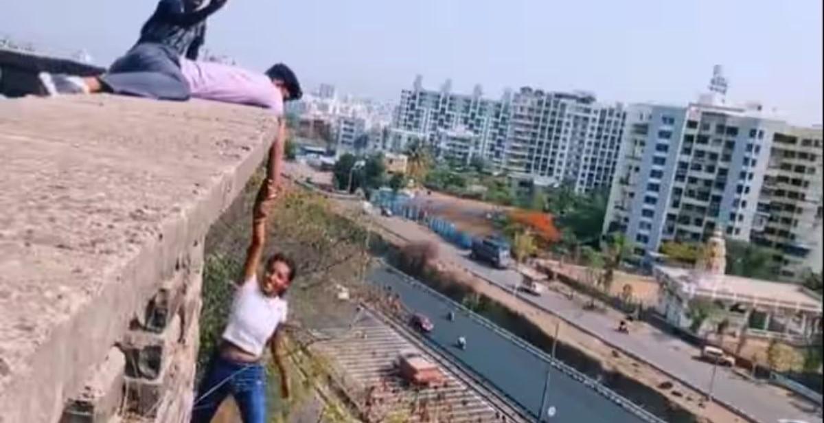 एका जुन्या इमारतीवर हाताची पकड तपासण्यासाठी एक तरुणी तरुणाचा हात पकडून इमारतीवरून लटकल्याचा व्हिडिओ व्हायरल झाला. या दोघांसोबत तीन ते चार व्हिडिओग्राफरदेखील तेथे उपस्थित असल्याचे व्हिडिओवरून स्पष्ट होते. रील तयार करण्याच्या नादामध्ये एका तरुणीने आपला जीव गमावल्याची घटना नुकतीच छत्रपती संभाजीनगरमध्ये घडली आहे. कारमध्ये बसून रील बनवत असताना तरुणी कारसोबत दरीत कोसळली. या घटनेत तरुणीचा मृत्यू झाला आहे. दौलताबाद परिसरातील सुलीभंजन येथील दत्तमंदिराजवळ ही घटना घडली होती. हा प्रकार ताजा असतानाच अत्यंत धोकादायकपणे रीलचे शूट करण्यात येत असल्याचा प्रकार कात्रज परिसरात घडला