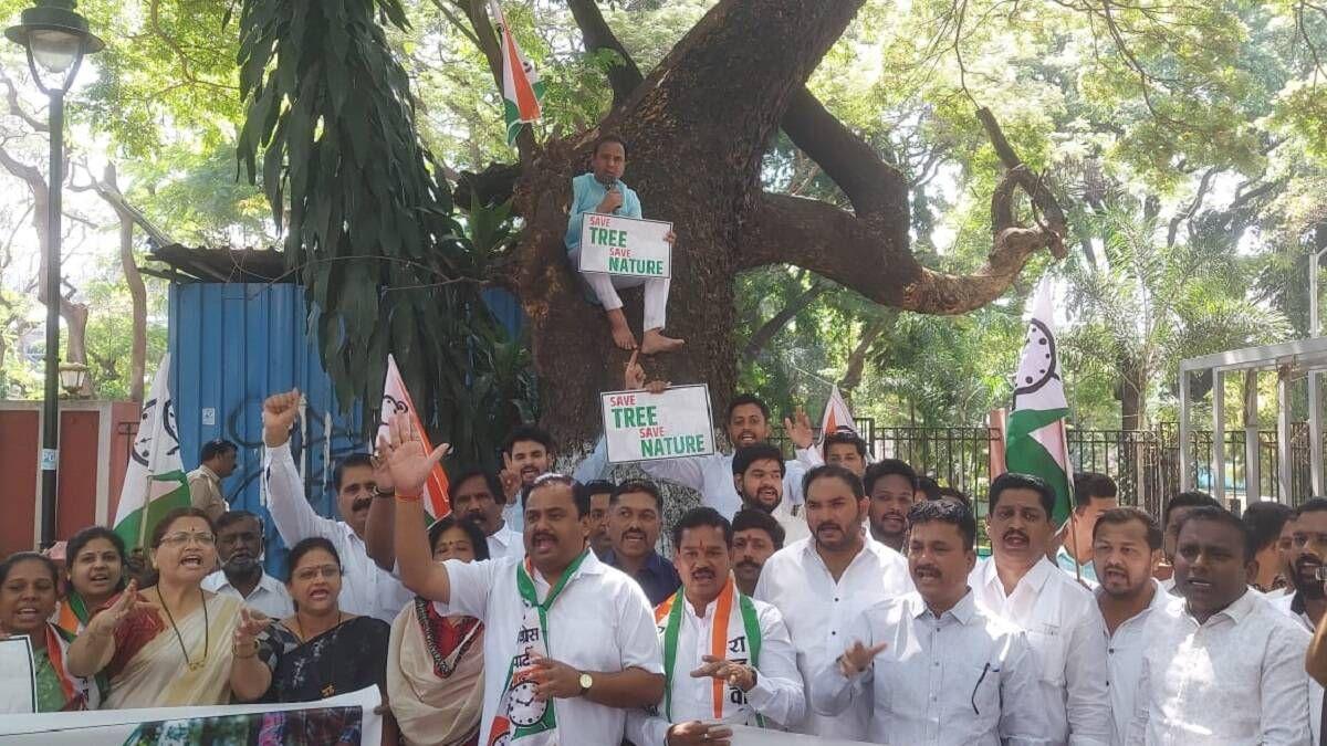 पुणे महानगरपालिकेच्या माध्यमातून नदी सुधार प्रकल्प हाती घेण्यात आला. या कामामुळे हजारो झाडांची कत्तल होणार आहे. त्या पार्श्वभूमीवर शहरातील पर्यावरण प्रेमींनी नाराजी व्यक्ती केली आहे. राष्ट्रवादी काँग्रेस पक्षानेही या विरोधात आंदोलन केले. महापालिकेच्या उद्यान विभागाच्या कार्यालयाबाहेरील झाडावर बसून राष्ट्रवादीच्या कार्यकर्त्यांनी आंदोलन केले. यावेळी भाजपा आणि महापालिका प्रशासनाविरोधात जोरदार घोषणाबाजी करण्यात आली.